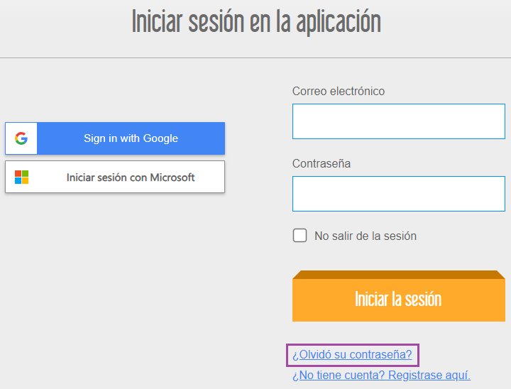 Si ha olvidado su contraseña, puede solicitar una nueva en la página de acceso o haciendo clic al botón ¿Olvidó su contraseña?.